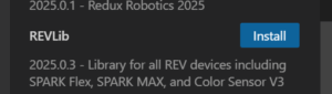 SPARK MAX Motor Controller. We first need to install the vendor library for this. This can be done by navigating to the left side tab for “WPILib Vendor Dependencies”, and clicking install for “REVLib”: